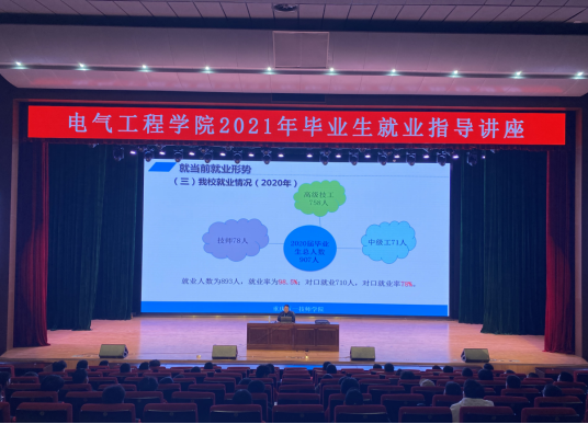 为做好2021届毕业生的就业推荐工作,使学生充分了解当前的就业政策和就业形势,树立科学的就业观和择业观,2021年3月22日,电气工程学院开展2021届毕业生就业指导专题讲座。学院院长黄春永、副院长代志良参加讲座。