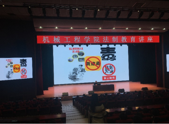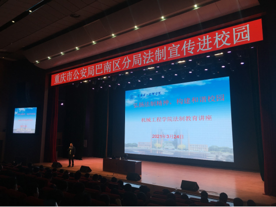 为营造良好的法治教育环境,进一步维护校园安全秩序,加强校园法治宣传,不断增强学生的法律意识和法治观念。3月24日,机械工程学院特邀请巴南区公安分局黄立均警官为我院学生开展法治教育讲座。讲座由机械工程学院副院长向应军主持,学校副校长周晓健、机械工程学院院长肖强、巴南区公安分局法治副支队长刘蓉、法治支队辅警曾思斯参加讲座。