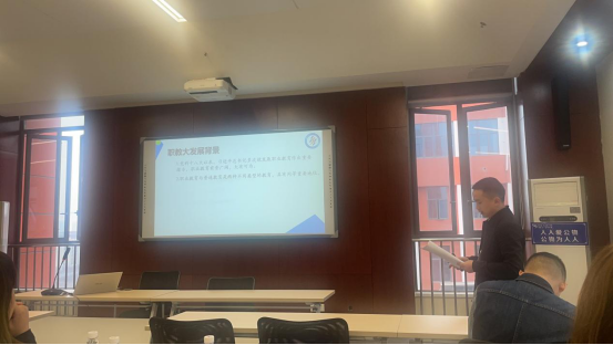 随后,辅导员张洪就职教大发展背景下的新时代辅导员(班主任)五大工作格局应当如何构建进行讲解,并从成长与发展的角度出发,为班主任今后的自我成长与提升明确了要求,为我校步入高校行列后,进一步加强辅导员(班主任)工作能力,提升辅导员专业化水平指明了方向。